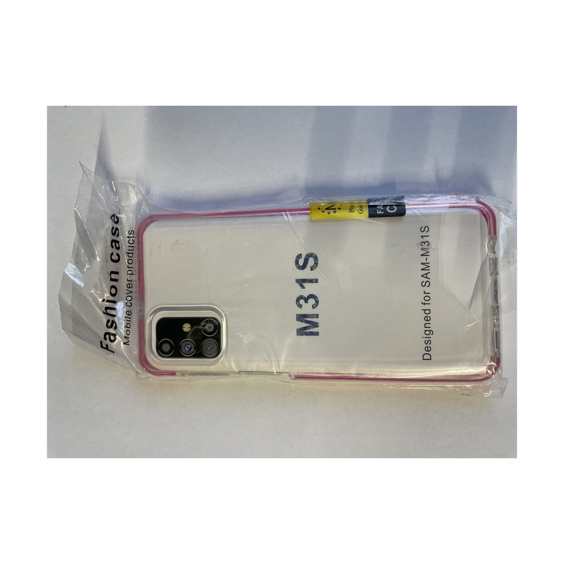 Przezroczyste etui silikonowe (TPU) dedykowane do Samsung Galaxy M31S (SM-M317F). Elastyczna, wzmocniona ramka w kolorze różowym (dark pink) chroni telefon przed uderzeniami i zarysowaniami. Precyzyjne wycięcia na porty, przyciski i aparaty zapewniają pełny dostęp do wszystkich funkcji telefonu.